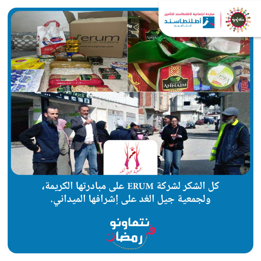 وبهذه المناسبة، تتقدم جمعية جيل الغد وأسرها المستفيدة بخالص عبارات الشكر والامتنان لشركة ERUM وأطرها على هذه الالتفاتة الإنسانية النبيلة، التي كان لها أثر طيب في نفوس العائلات وأدخلت الفرحة إلى بيوتهم في هذا الشهر الفضيل.