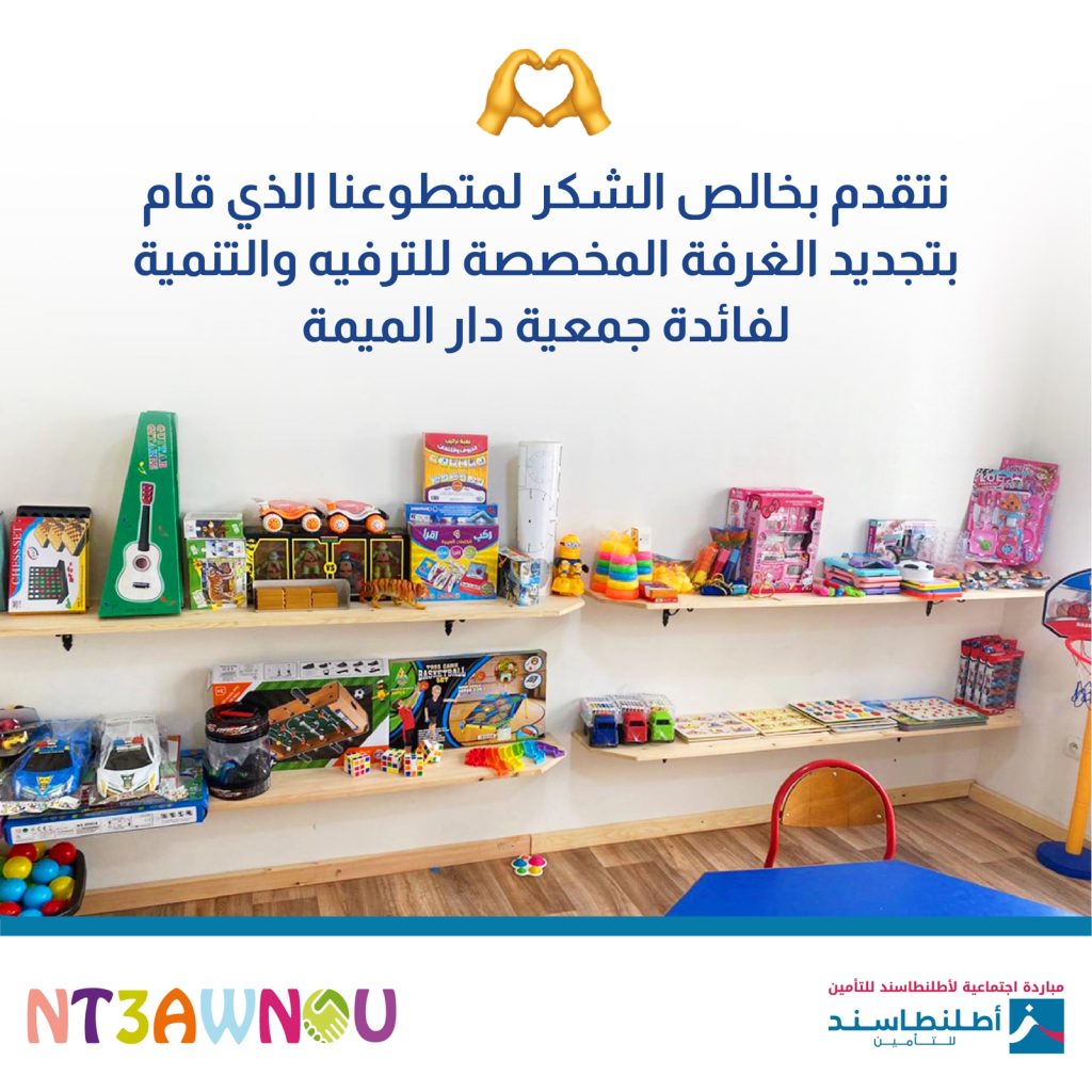 بفضل التبرع من متطوعنا ، تم تجديد غرفة الأنشطة لجمعية دار لميمة. هذه الغرفة ، المخصصة للترفه والتنمية، جاهزة الآن للترحيب بالأطفال